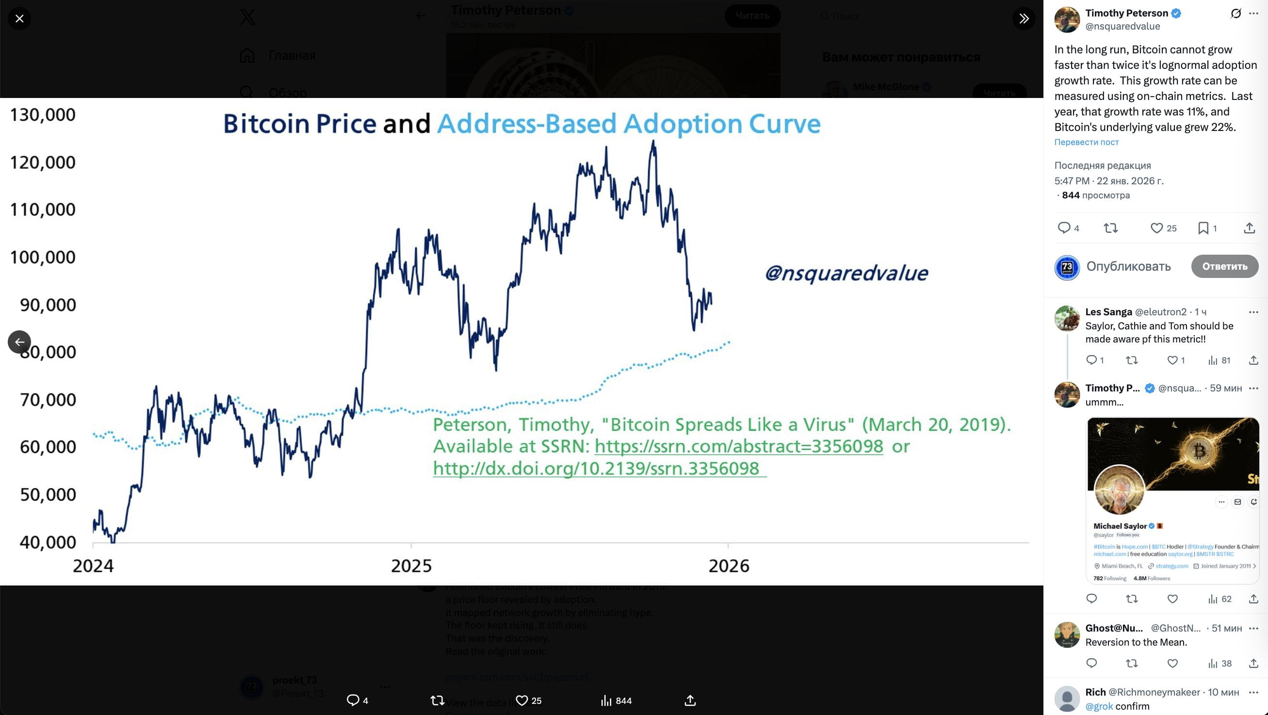 Напомним, Тимоти Питерсон (nsquaredvalue в X) - финансовый аналитик и исследователь крипторынка, известный своими моделями справедливой стоимости #BTC и исследованиями долгосрочных и сезонных ценовых циклов. Его аналитические работы и методологии регулярно цитируются в #Bloomberg, #CNBC и #Forbes.