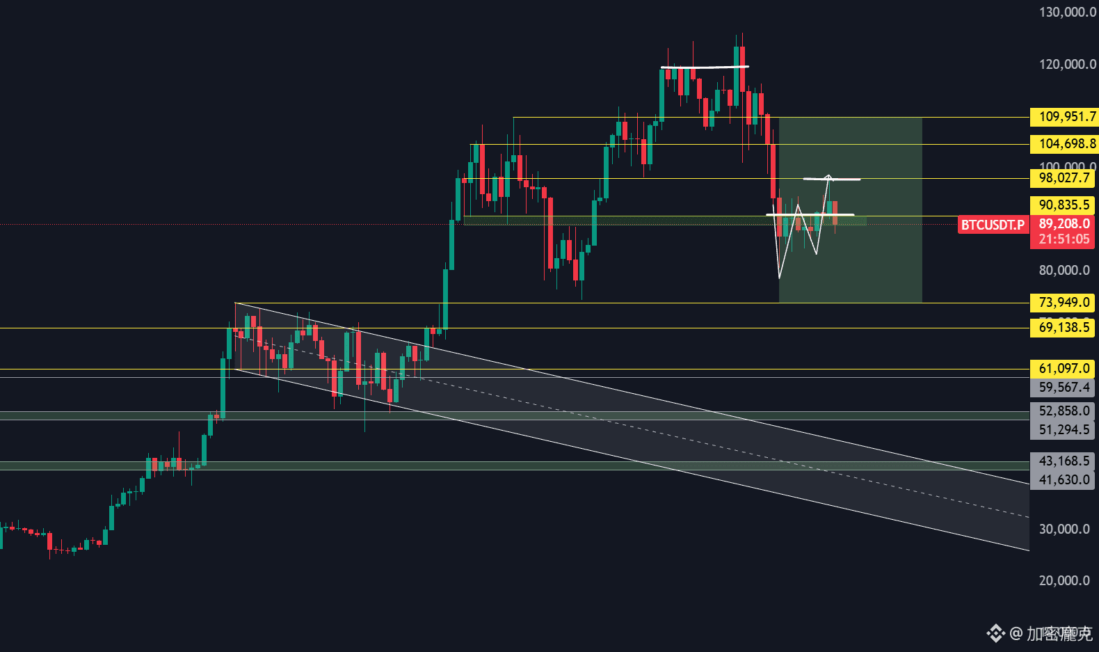 如果本周的周K最終沒能收復,他是收破90800的話,在流動性不足的情況之下,下周就需要比較小心到他反抽不過90800或是短暫盤整之後,再次向下來測試85000關鍵位或前低80000附近