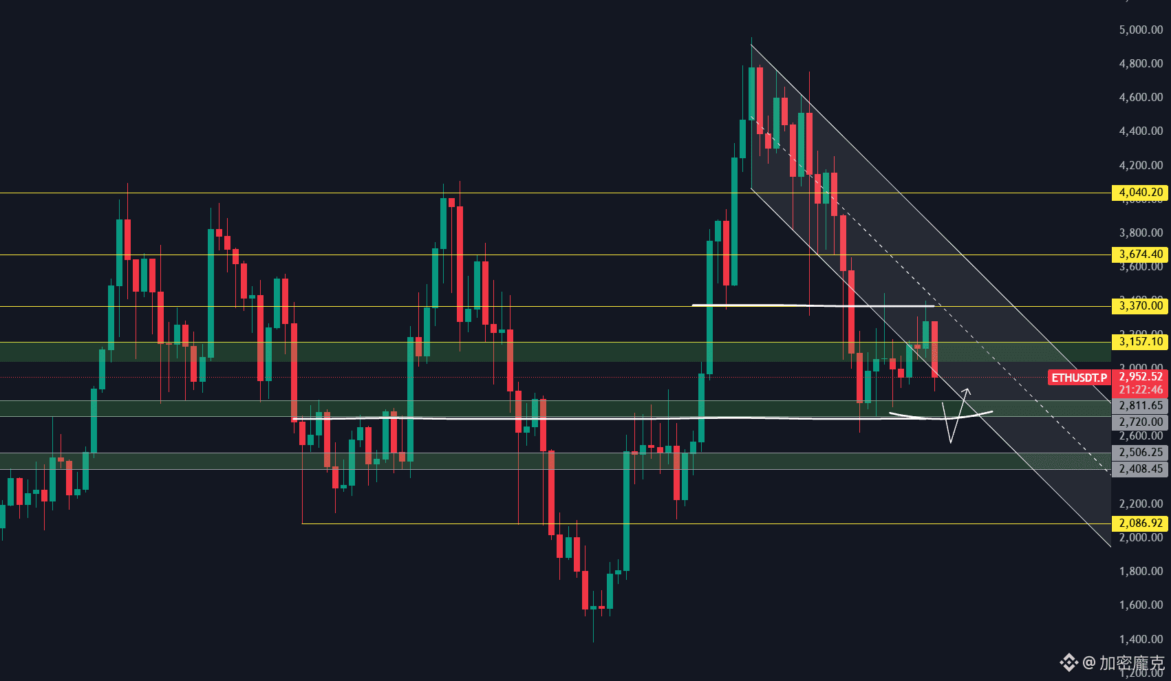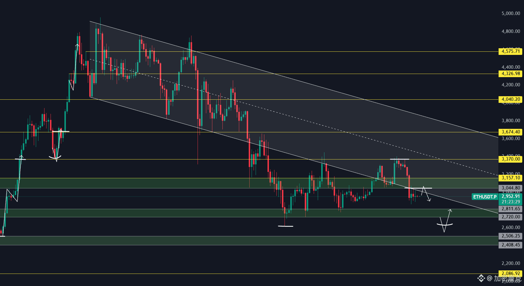 ETH:目前周K的關鍵小區間就是在3044~3157,如果沒有辦法最少收復回3044關鍵位之上的話,這裡需要小心到的走法基本上跟BTC是完全一致的,包含山寨也都一樣,主要要關注的都是比特幣如果是走出90800無法收復,並且再次下探的走法的話,那ETH這裡就有可能會再次來測2720~2811甚至前低點