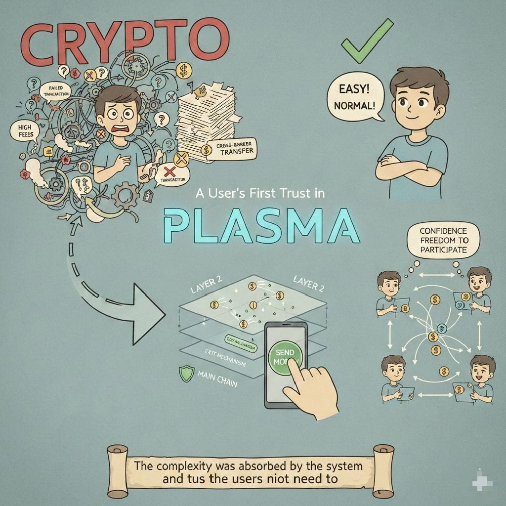 I did not enter the field of blockchain due to my fondness of technology. I came because I had to have a different option. In my region, cross-border money transfer was cumbersome, costly and was surrounded by paperwork, which never appeared to have a conclusion. My initial encounters with crypto were exasperating, friends discussed crypto as freedom. Transactions failed. The fee was altered without any prior notice. Wallets felt intimidating. I could do without slogans, I wanted simplicity. That is why my initial actual experience with Plasma is so vivid, not due to the fact that I comprehended it, but because it was the first time when blockchain did not represent a threat, but rather a tool.