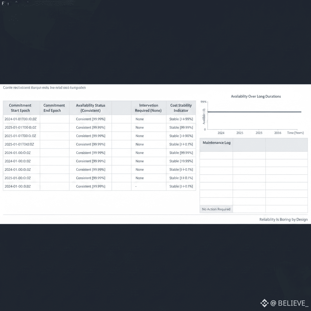 Instead of optimizing for peak moments, it optimizes for long stretches of uneventful time. Data sits. Time passes. Nothing breaks. Nothing needs intervention. That’s not exciting. But it’s rare.