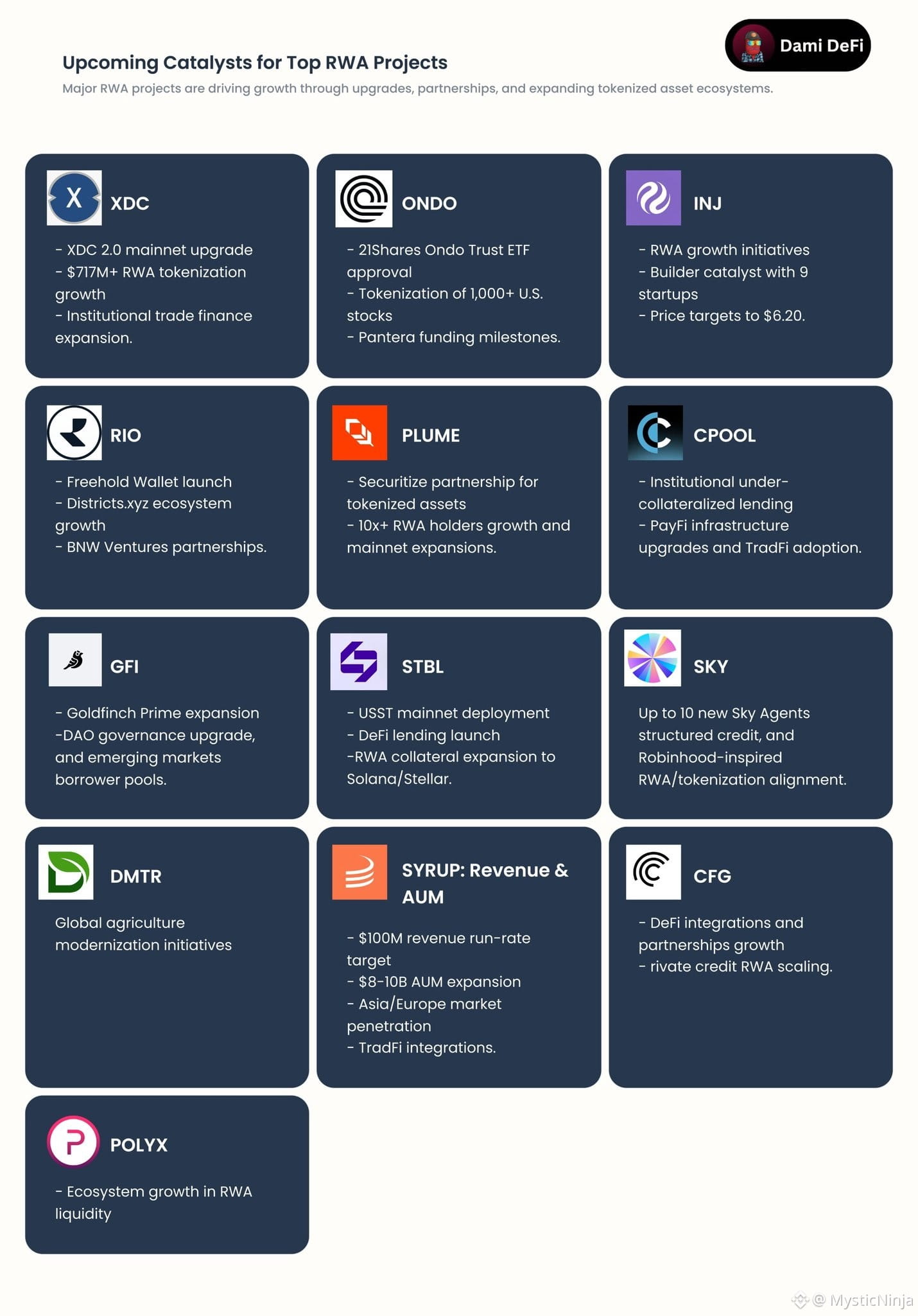 $CFG (Centrifuge) remains a bedrock protocol, focusing on scaling private credit RWAs through new DeFi integrations and partnership growth.
