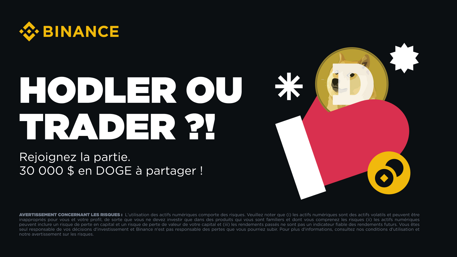 L'utilisation des actifs numériques comporte des risques. Veuillez noter que (i) les actifs numériques sont des actifs volatils et peuvent être inappropriés pour vous et votre profil, de sorte que vous ne devez investir que dans des produits qui vous sont familiers et dont vous comprenez les risques (ii) les actifs numériques peuvent inclure un risque de perte en capital et un risque de perte de valeur de votre capital et (iii) les rendements passés ne sont pas un indicateur fiable des rendements futurs. Vous êtes seul responsable de vos décisions d'investissement et Binance n'est pas responsable des pertes que vous pourriez subir. Pour plus d'informations, consultez nos Conditions d’utilisation et notre avertissement sur les risques.