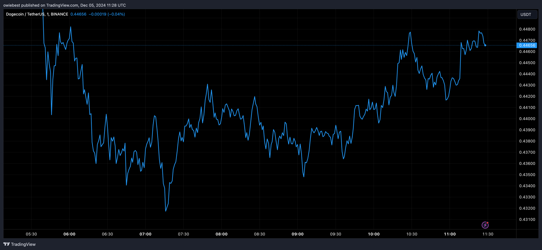 Au moment de la rédaction, le prix du Dogecoin se négocie autour de 0,43 $, en hausse de plus de 4 % au cours des dernières 24 heures, selon les données de CoinMarketCap.