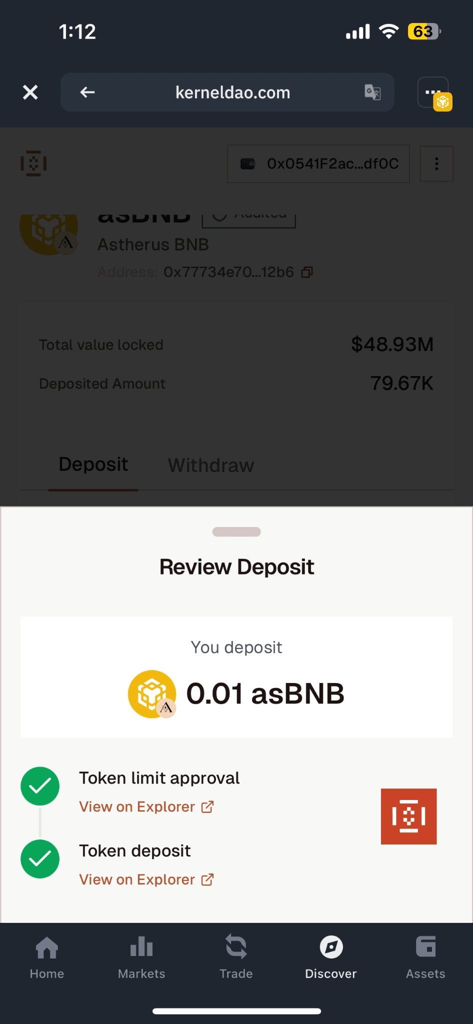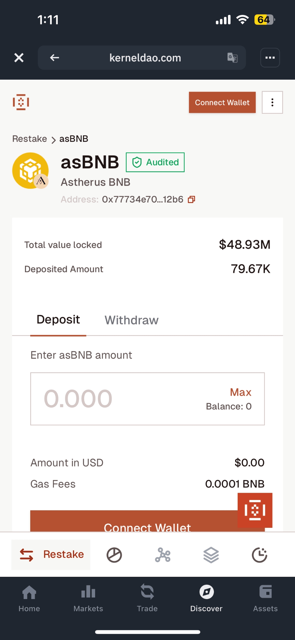 Étape 2 : Obtenez asBNB ou BNB pour le Restaking sur KernelDAO