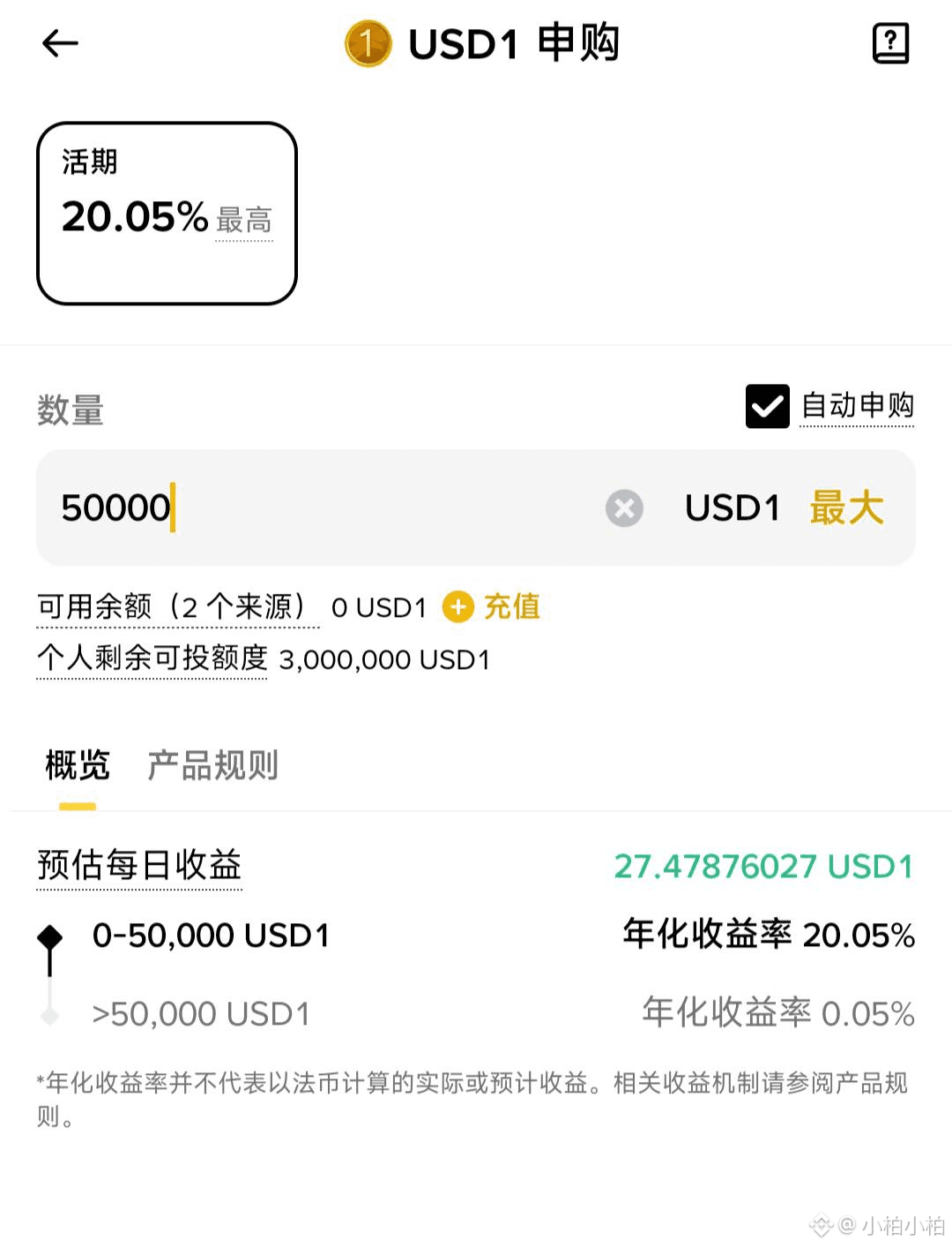 3. 再把 USD1 投入 20% 年化的稳定币理财