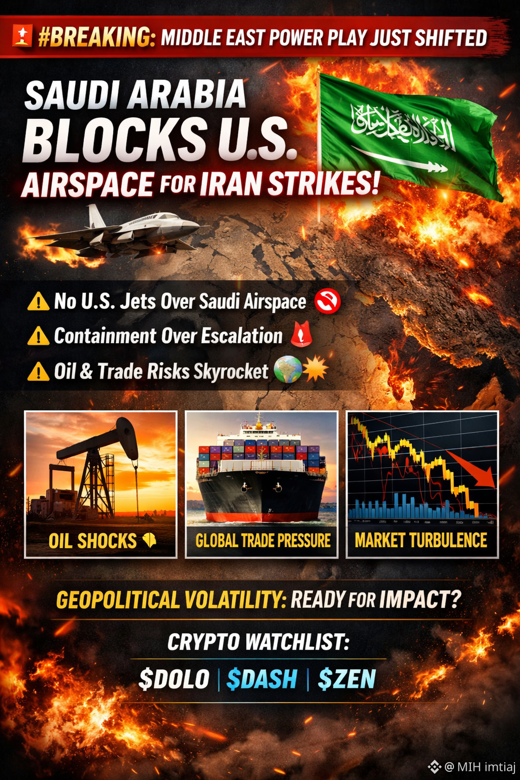 👉 No U.S. military aircraft will be allowed to use Saudi airspace for any strike on Iran.