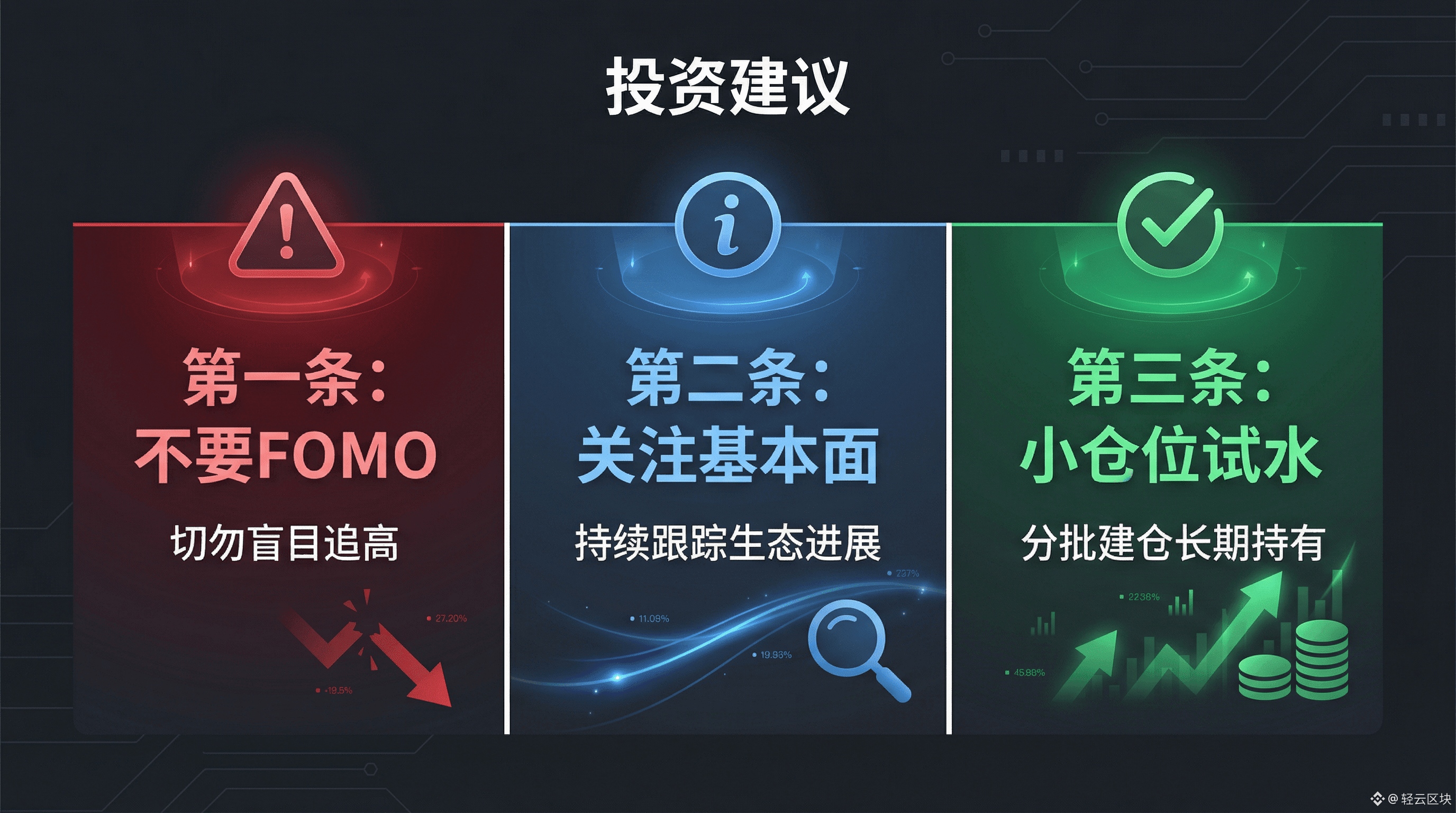 小仓位试水。如果你非常看好这个赛道和项目,可以考虑用小部分资金,在价格回调时分批建仓,并做好长期持有的准备。