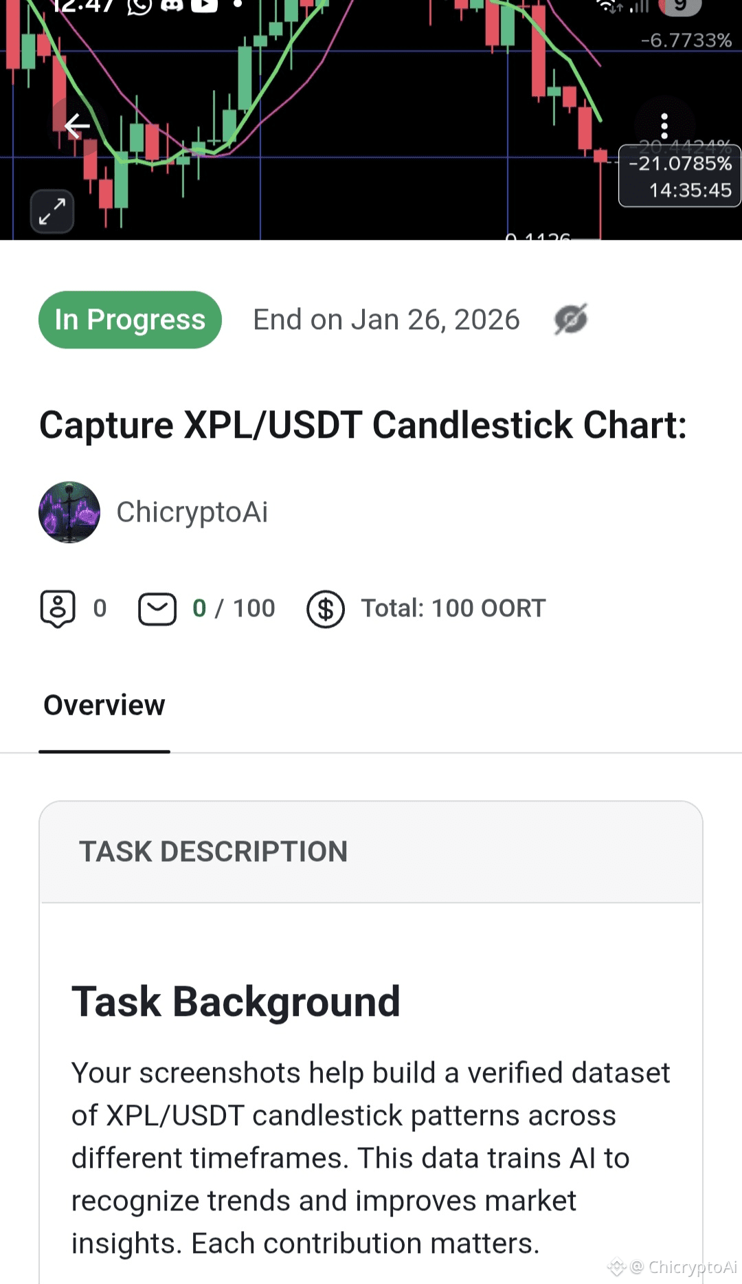 I’ve also created a task on OORT for you to contribute screenshots of XPL/USDT charts across different timeframes. The first contributors can win $1 OORT each! Join here and start participating: