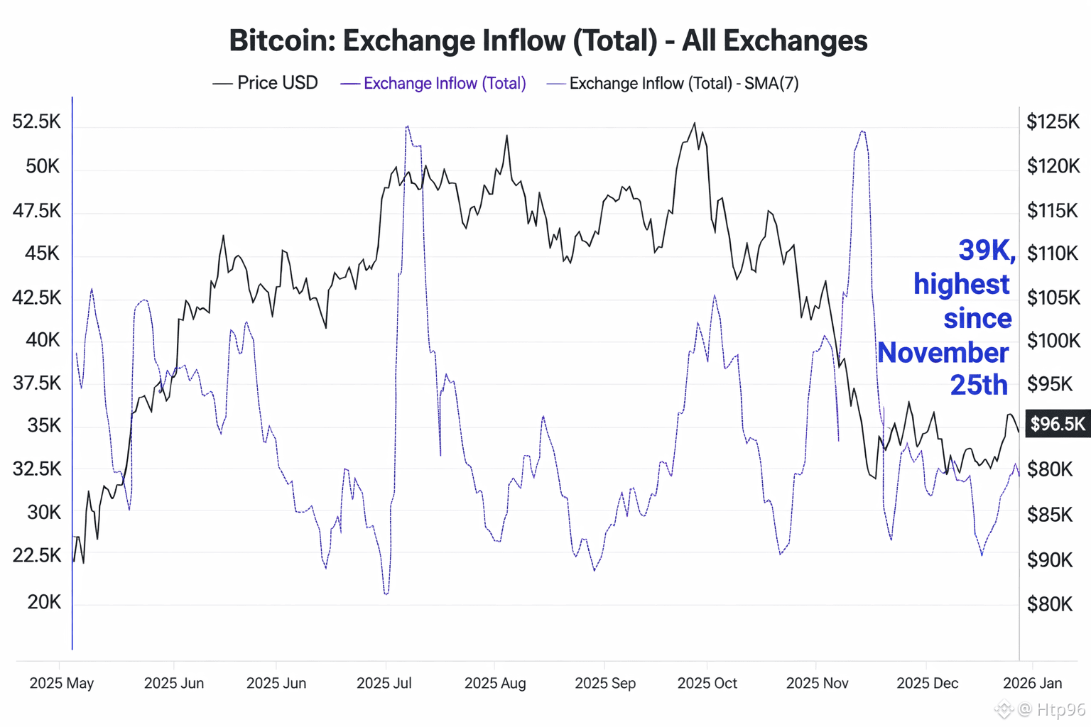 Cụ thể, trung bình 7 ngày của dòng tiền $BTC vào sàn đã đạt khoảng 39.000 BTC trong ngày hôm nay, đánh dấu mức cao nhất kể từ ngày 25/11/2025. Đây là một con số đáng chú ý, cho thấy hành vi của nhà đầu tư đang có sự thay đổi rõ rệt so với giai đoạn trước.