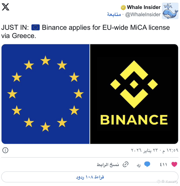يكتسب التوقيت أهمية كبيرة. سيبدأ تطبيق MiCA بالكامل في 1 يوليو 2026. الشركات التي تفشل في الامتثال قد تفقد الوصول إلى سوق الاتحاد الأوروبي. بتقديم الطلب الآن، تشير بينانس إلى رغبتها في البقاء على المدى الطويل. إذا تمت الموافقة، ستمكن الرخصة بينانس من العمل في جميع الدول الأعضاء الـ27 في الاتحاد الأوروبي تحت إطار تنظيمي واحد.