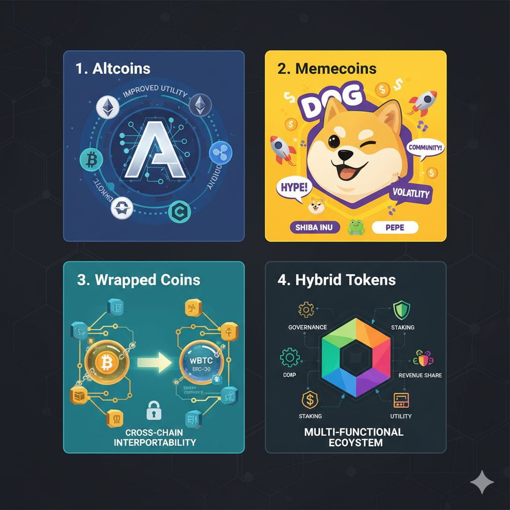 We're breaking down the main types of crypto you'll run into once you leave Bitcoin territory: altcoins, memecoins, wrapped coins, and hybrid tokens - and why they exist in the first place.