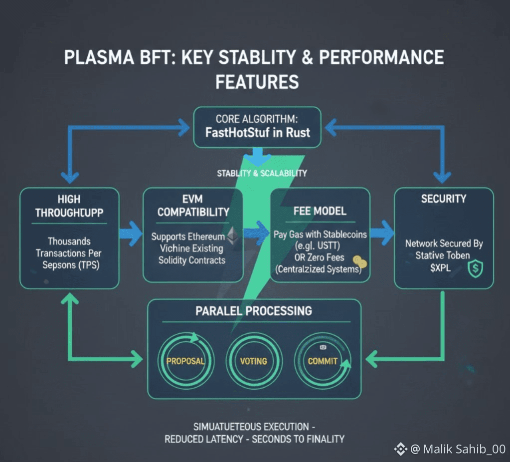 • Key Stability and Performance Features: High Throughput: This system is designed to process thousands of transactions per second (TPS). EVM Compatibility: Plasma supports the EVM, enabling developers to deploy existing Solidity contracts. Fee Model: It employs a unique fee model that allows users to pay gas fees using stablecoins (such as USDT) or to be completely free of fees through centralized payment systems. Security: The network is secured by staking its native token ($XPL).