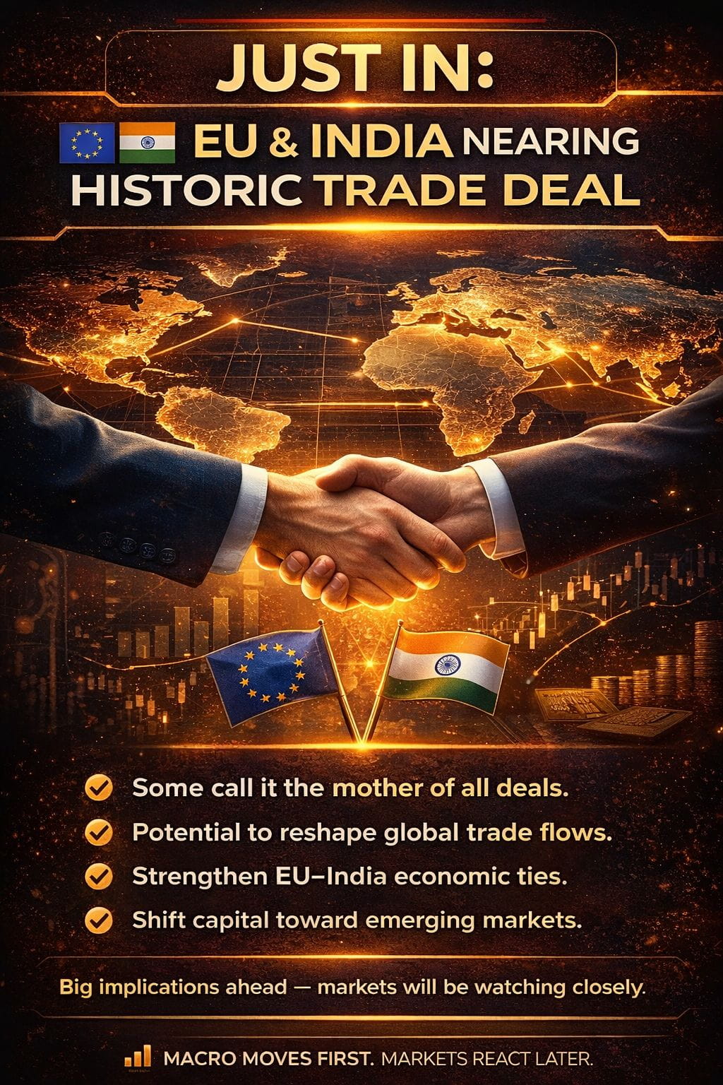 If finalized, this could reshape global trade flows, strengthen EUâIndia economic ties, and shift capital toward emerging markets.
