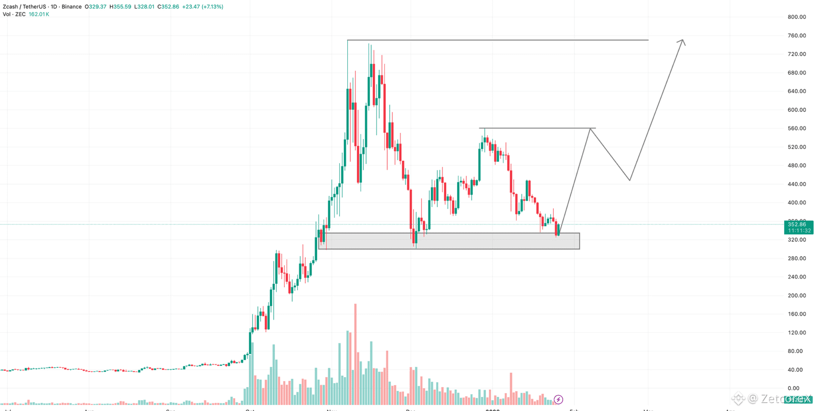 Recent price action shows growing interest in $ZEC. Volume and volatility remain elevated, which attracts both traders and larger players.
