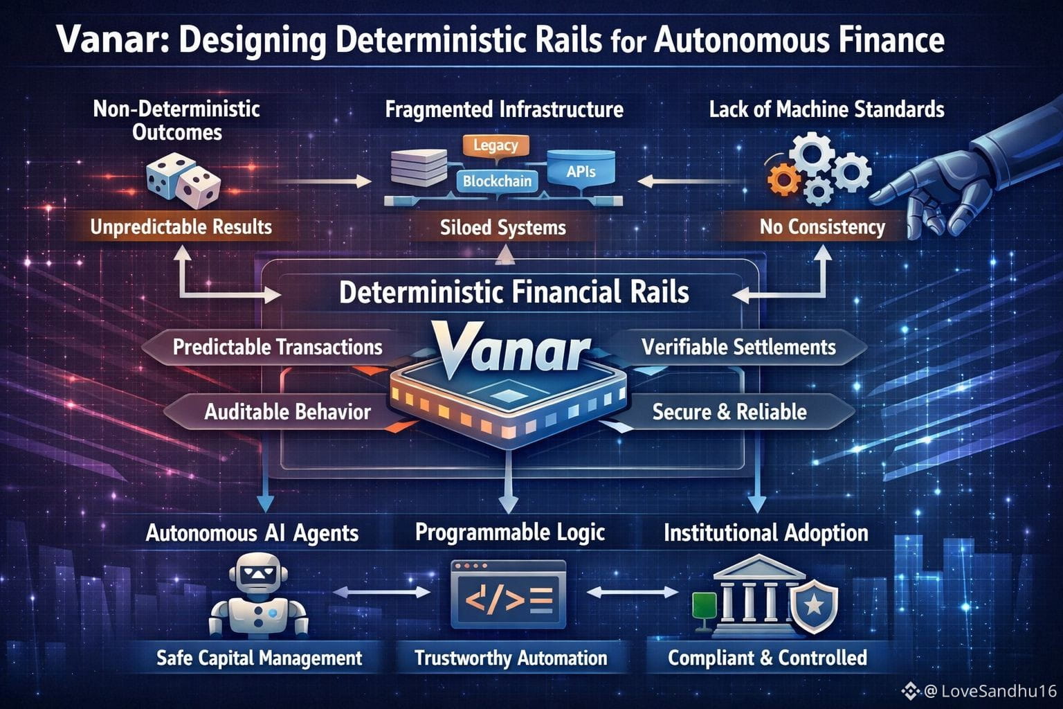 The financial industry is entering a new chapter — an age when software agents execute trades, rebalance portfolios, manage treasuries, even help coordinate the flows of capital — all without human hands at all. The transition to autonomous finance offers efficiency, scale, and real-time responsiveness. But it also opens up a key challenge: How do we ensure predictability, safety, and trust with machines in control of the money? Vanar was constructed to solve this problem. Vanar offers autonomous finance as a deterministic rail platform, and this is paving the way for the programmable, verifiable, and reliable financial automation that can be implemented globally. This article examines why deterministic infrastructure is important, how Vanar tackles the question, and what this suggests for the world of decentralized financial systems. Automation isn’t new in finance. Algorithms run the show in trading desks, payment routing systems, and risk management platforms. But the vast majority of current products share three key weaknesses: