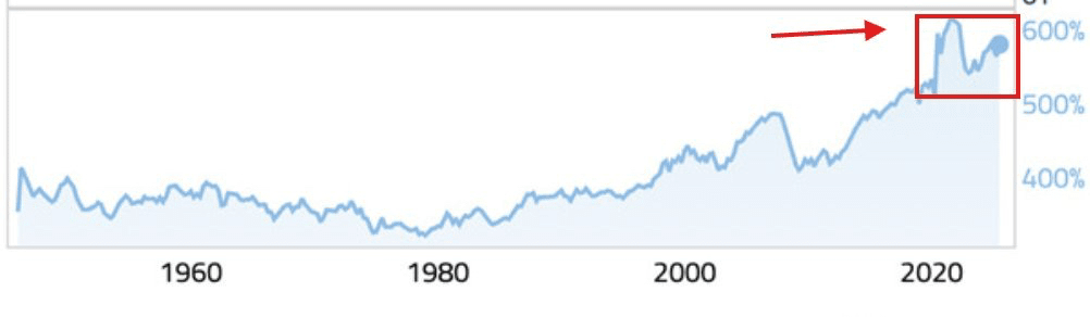 Kekayaan bersih rumah tangga sekarang sama dengan 581% dari PDB AS, tertinggi sejak Q1 2022.