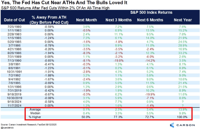 Dalam 20 kali terakhir ini terjadi, S&P 500 naik rata-rata +13,9% selama 12 bulan berikutnya, menurut Carson.