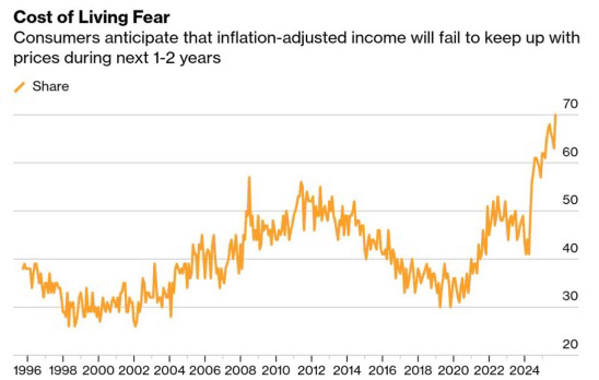 Rekor 70% konsumen percaya bahwa pendapatan mereka akan gagal untuk mengikuti inflasi.