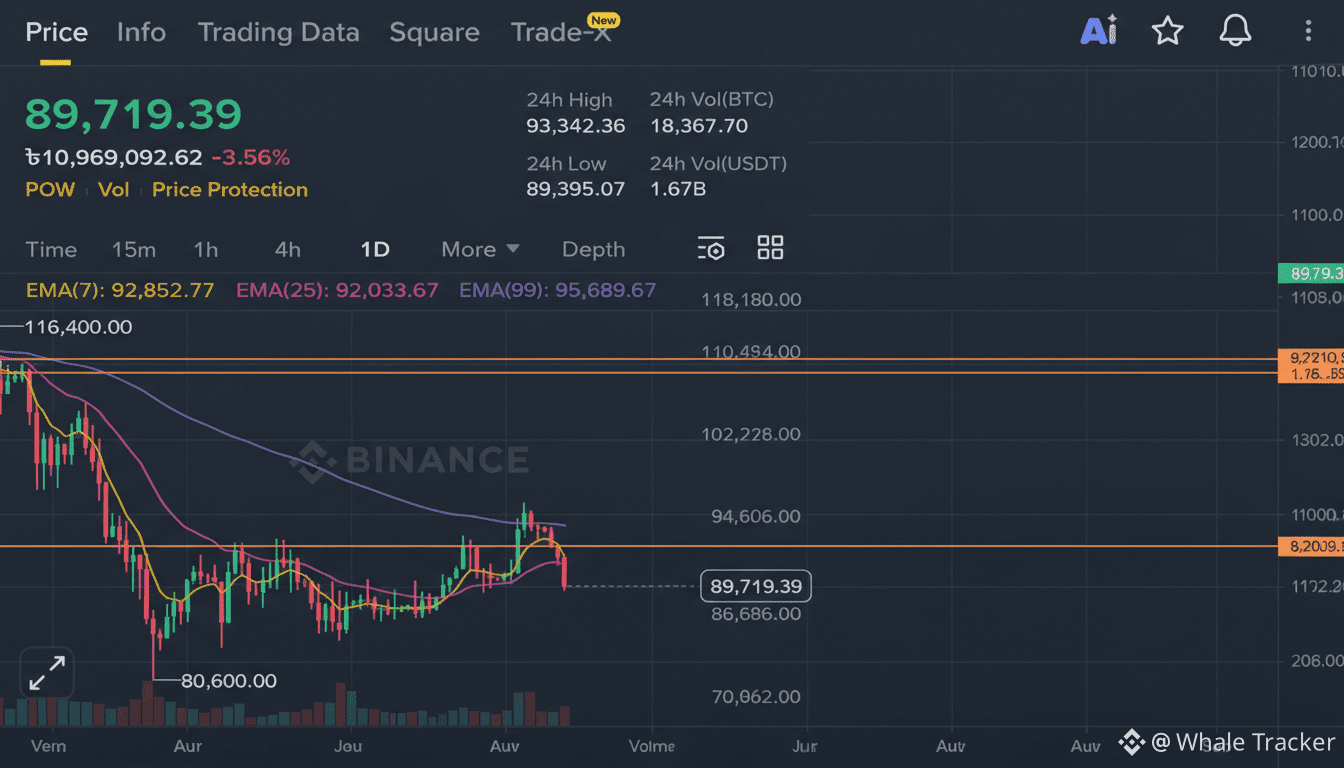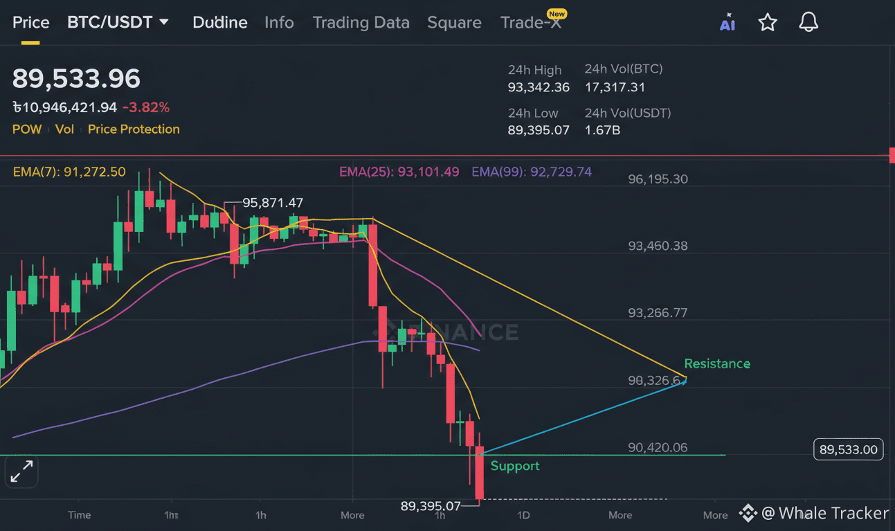 2. We’re testing $89,395** — today’s low. If this breaks, there isn’t strong support until **$88,000, maybe even $86,000.