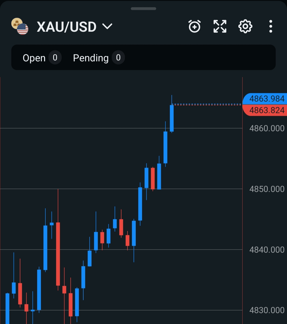 Penutupan di atas $4,850** berarti reli masih kuat.