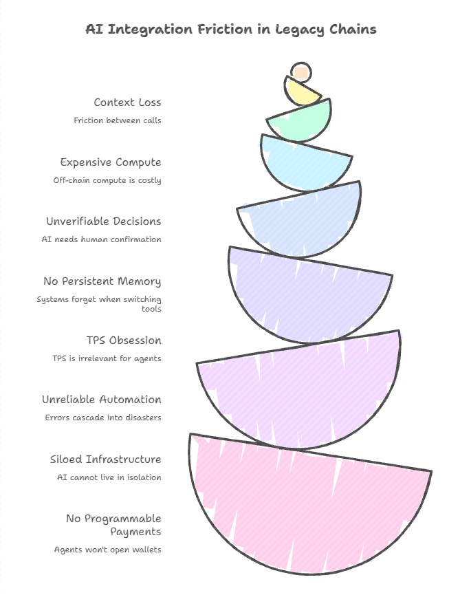 Banyak rantai di 2026 suka mengatakan bahwa mereka siap AI. Apa yang biasanya mereka maksud adalah mereka menambahkan lapisan AI di atas infrastruktur yang tidak pernah dirancang untuk berpikir, mengingat, atau bertindak sendiri. Di situlah gesekan mulai terjadi. Konteks hilang di antara panggilan. Perhitungan off-chain menjadi mahal. Keputusan tidak dapat diverifikasi. Dan yang terburuk dari semua itu, AI masih membutuhkan manusia untuk mengklik konfirmasi seolah-olah itu adalah 2021.