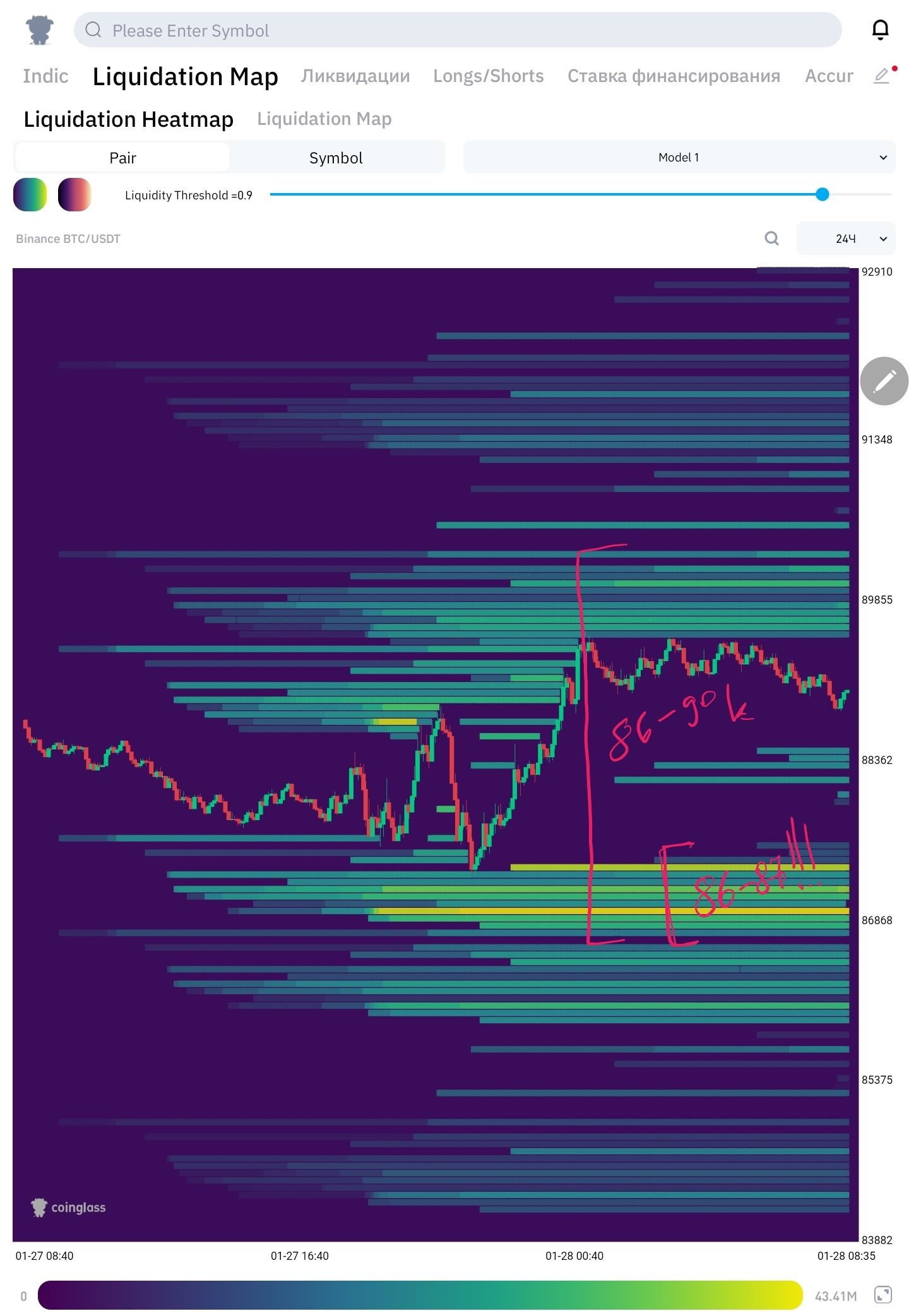 📍 Peta panas memberikan rentang harga kira-kira 86-90k dengan akumulasi volume besar di sekitar ❗86-87k