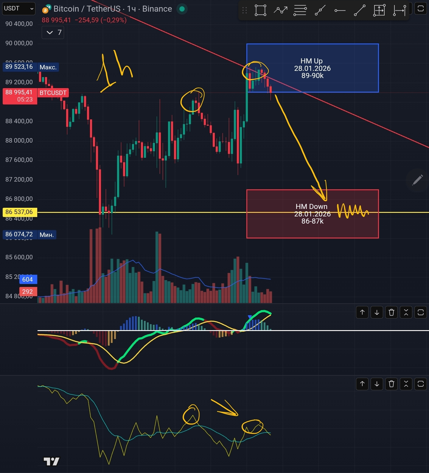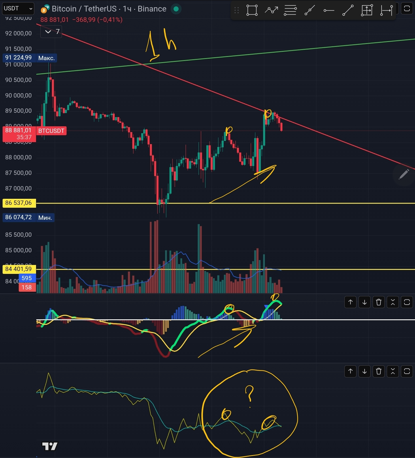 📍Kesimpulan bagi saya adalah: harga saat ini menguji kekuatan garis resistensi turun, dan apa yang dikatakan oleh peta panas dan divergensi di grafik indikator volume pada candle jam adalah bahwa itu tidak akan ditembus saat ini. Saya mengharapkan penurunan harga di sekitar 86-87. Sekalian saya juga akan memeriksa divergensi volume, seberapa akurat ia bekerja.