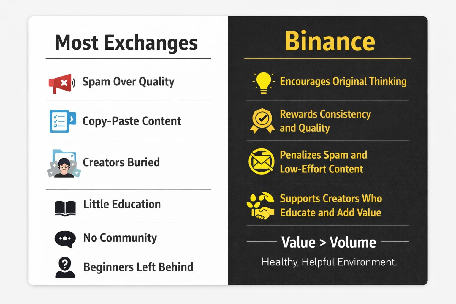 Platform ini juga menghargai kualitas, konsistensi, dan orisinalitas. Apakah itu penciptaan konten, pembelajaran, atau perdagangan, Binance menghargai usaha — bukan jalan pintas. Spam tidak bertahan, tetapi pekerjaan nyata bertahan.