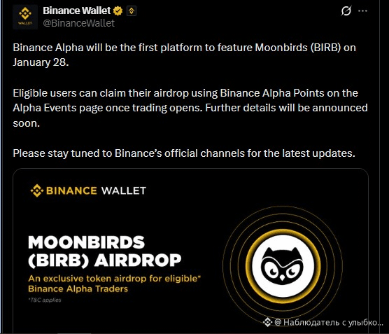 Дополнительно, Бинанс Альфа будет первая платформа, которая будет представлена Лунные птицы (BIRB) на 28 января, где соответствующие пользователи могут претендовать на сброс воздуха, используя Бинанс Альфа Очки.