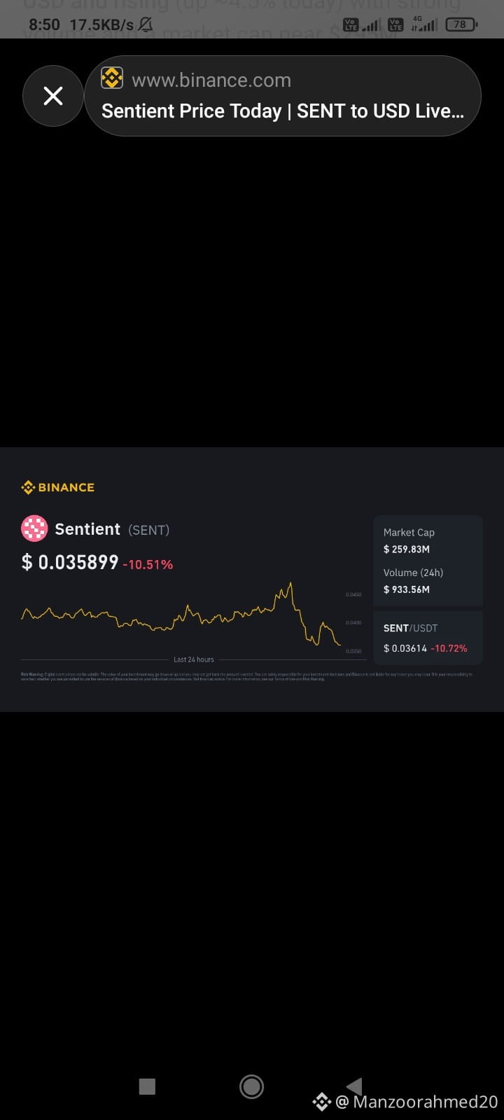 From a market perspective, Sentient (SENT) can show high volatility, meaning the price may rise or fall quickly depending on market trends and investor sentiment. However, if the overall crypto market remains bullish and the AI narrative stays strong, SENT could gain more attention and adoption. Increased liquidity, exchange support, and strong project updates can also act as key catalysts for future growth.