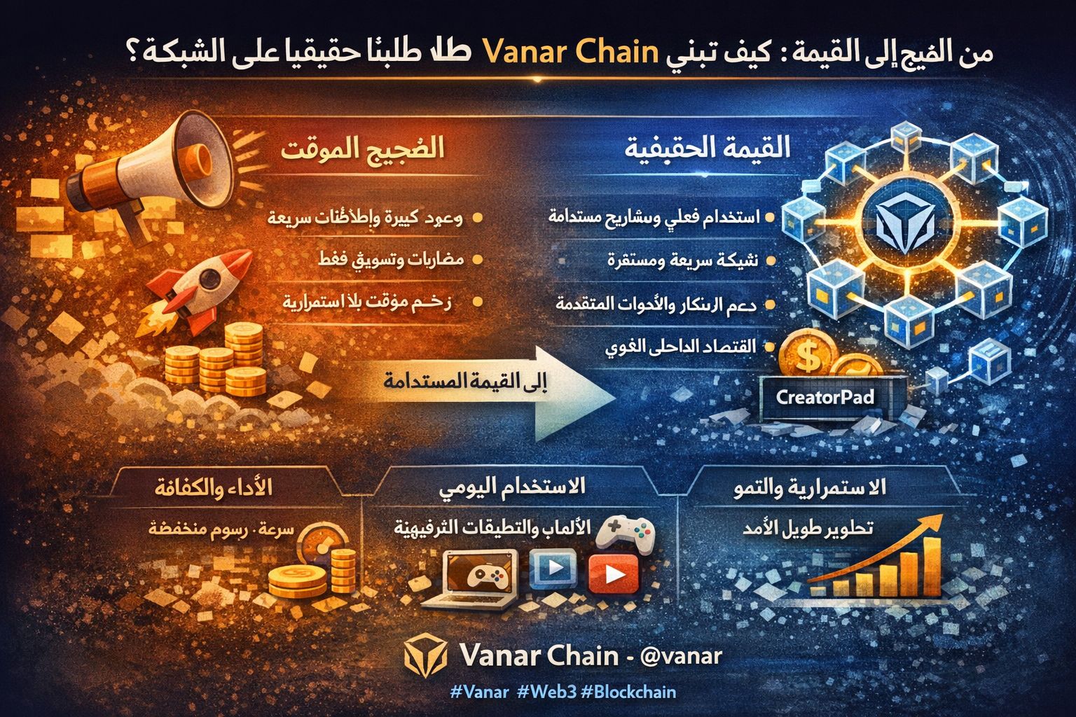 في المحصلة، الانتقال من الضجيج إلى القيمة يتطلب رؤية طويلة الأمد، وانضباطًا في التنفيذ، وفهمًا عميقًا لكيفية نشوء الطلب الحقيقي. Vanar Chain تمثل نموذجًا لشبكة لا تطارد الاهتمام اللحظي، بل تبني أساسًا يسمح للقيمة بالظهور تدريجيًا. متابعة تطورات المشروع عبر @vanar تكشف عن مسار يركز على الاستخدام، التبني، وبناء منظومة قادرة على الصمود في وجه تقلبات السوق.