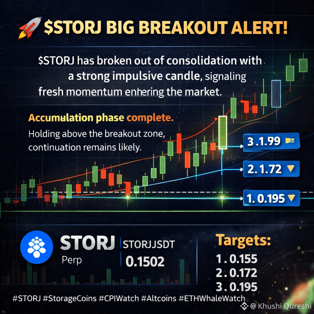 $STORJ ne long time consolidation ke baad strong impulsive candle ke saath breakout diya hai 🔥