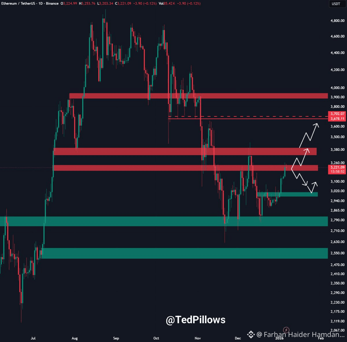 ETH holds $3,000–$3,200 zone and regains upside momentum.