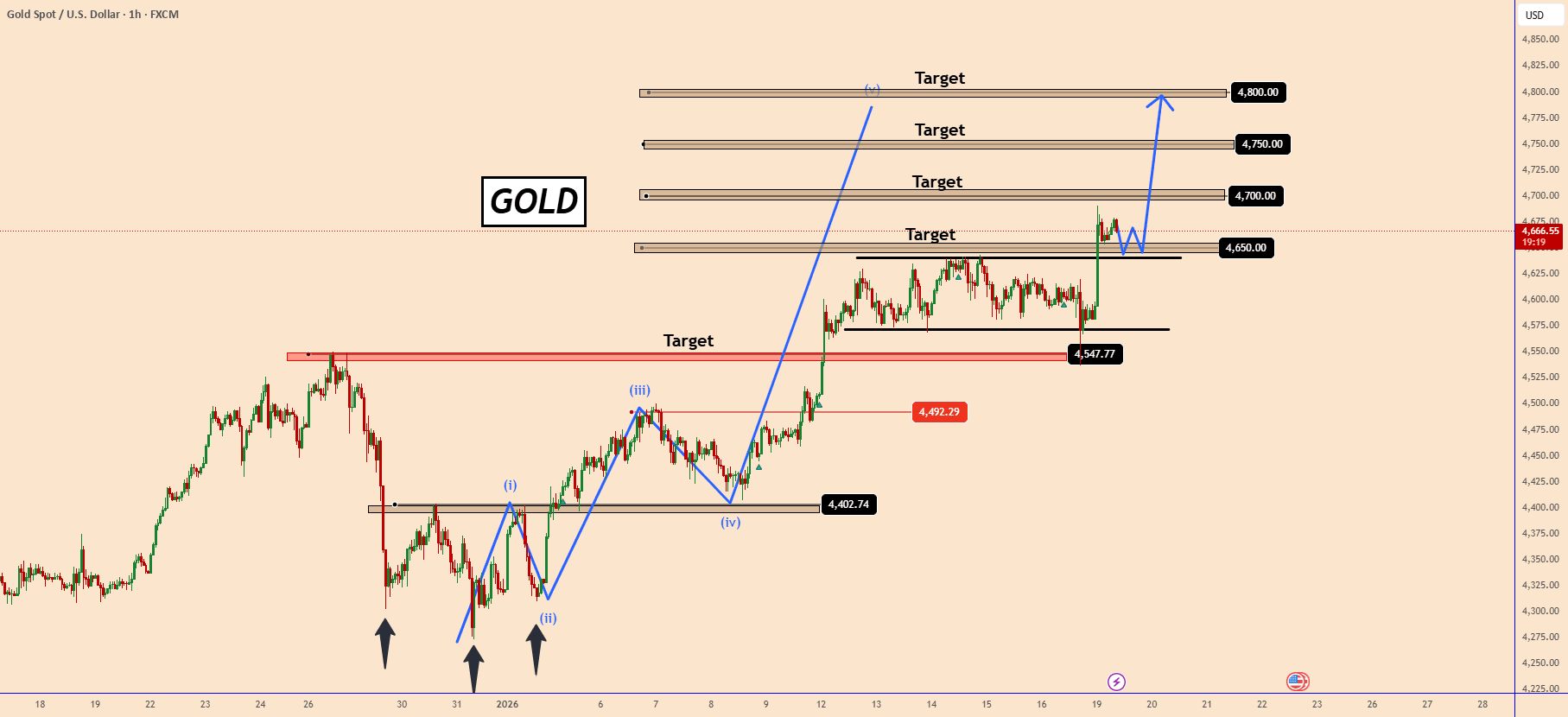 Questo nuovo schema rialzista che è stato finalizzato oggi, ha aumentato le possibilità che l'oro salga ulteriormente a 4700; 4750 e 4800 stanno aumentando ulteriormente.