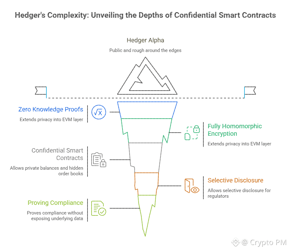 What Hedger allows is confidential smart contract execution. Private balances hidden order books selective disclosure for regulators. You can prove compliance without exposing the underlying data. That sentence sounds simple but implementing it is not.
