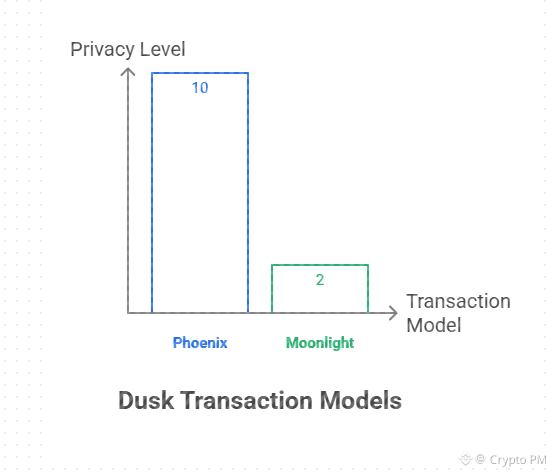 Dusk did not choose a single view on privacy and that decision feels intentional not confused. The Phoenix transaction model is fully shielded. Amounts hidden recipients hidden sender hidden but still cryptographically valid. This is strong privacy and it exists without breaking the chain or isolating liquidity.