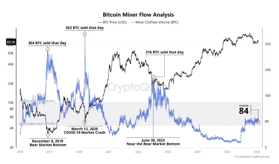 Oggi, la quantità $BTC trasferita dalle miniere è solo di circa 84 BTC. Nella storia, ogni volta che questo flusso di denaro si esaurisce a questo livello, riflette spesso due possibilità parallele.