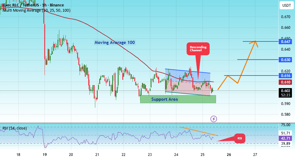 C'è una zona di supporto chiave in verde a 0.595, e il prezzo è rimbalzato da questo livello piÚ volte. Un altro rimbalzo è previsto.