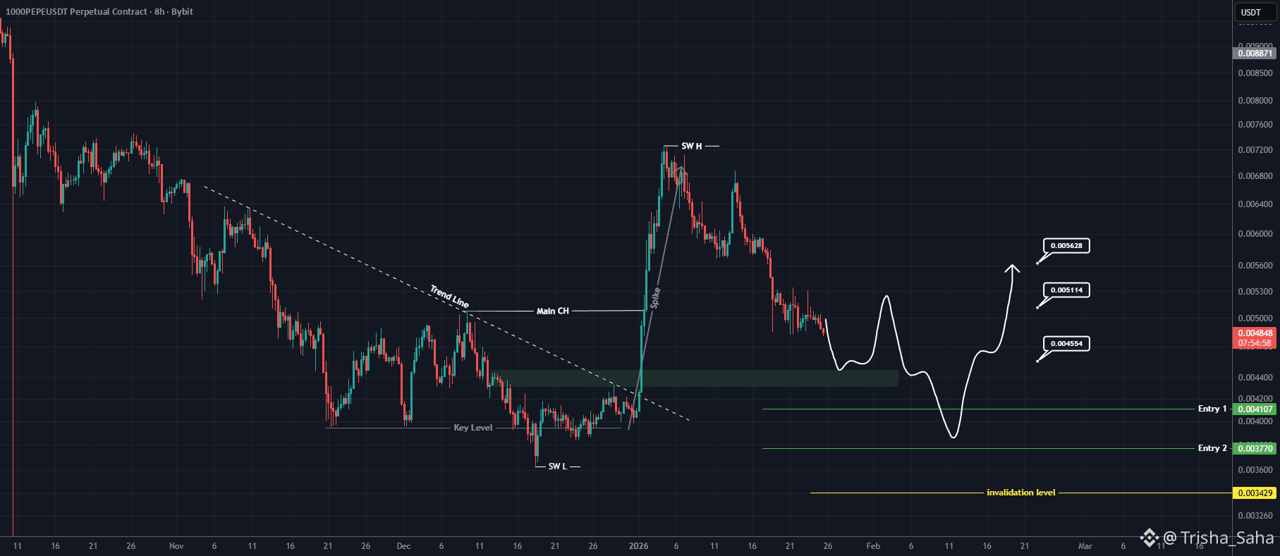 Considering the strong breakout of price above the long-term bearish trendline and the successful reclaim of key structural levels, the overall market structure of PEPE has shifted to bullish. This move was impulsive and backed by strong momentum, which usually signals a change in market sentiment rather than a simple short-term reaction.