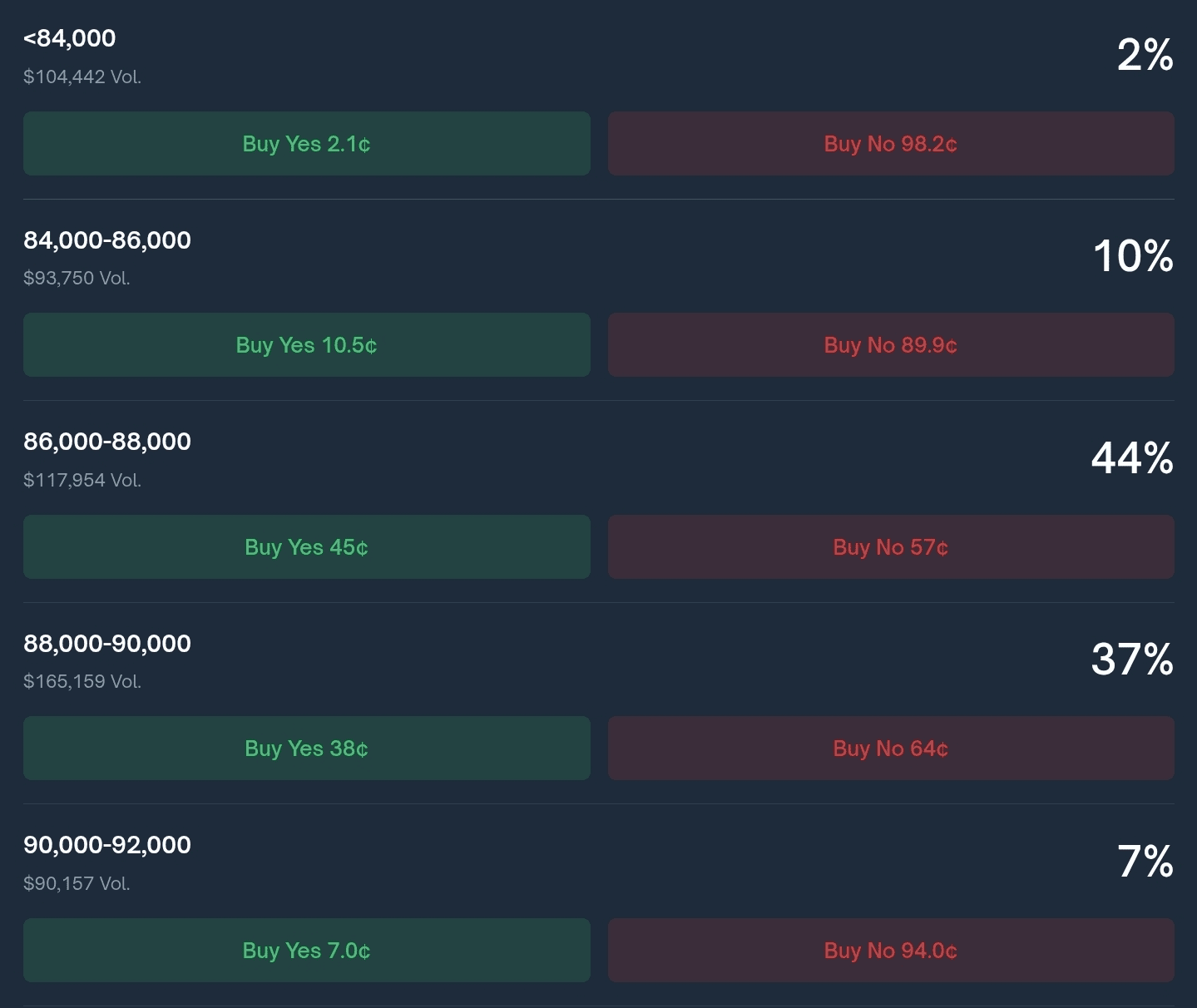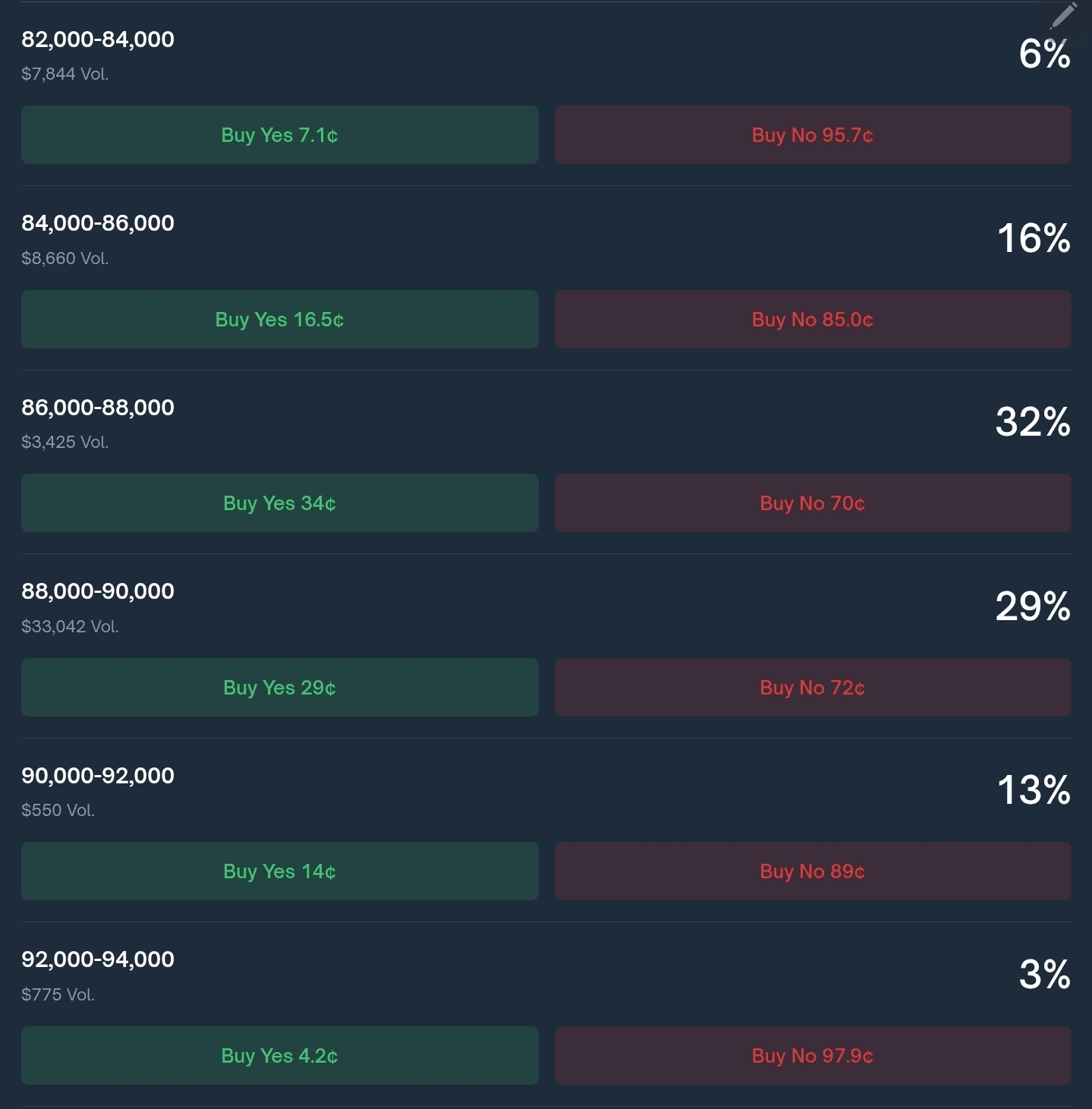 📍Прогноз большинства в Polymarket на сегодняшний и на завтрашний день даёт нам наиболее вероятный разброс цен 86-88k