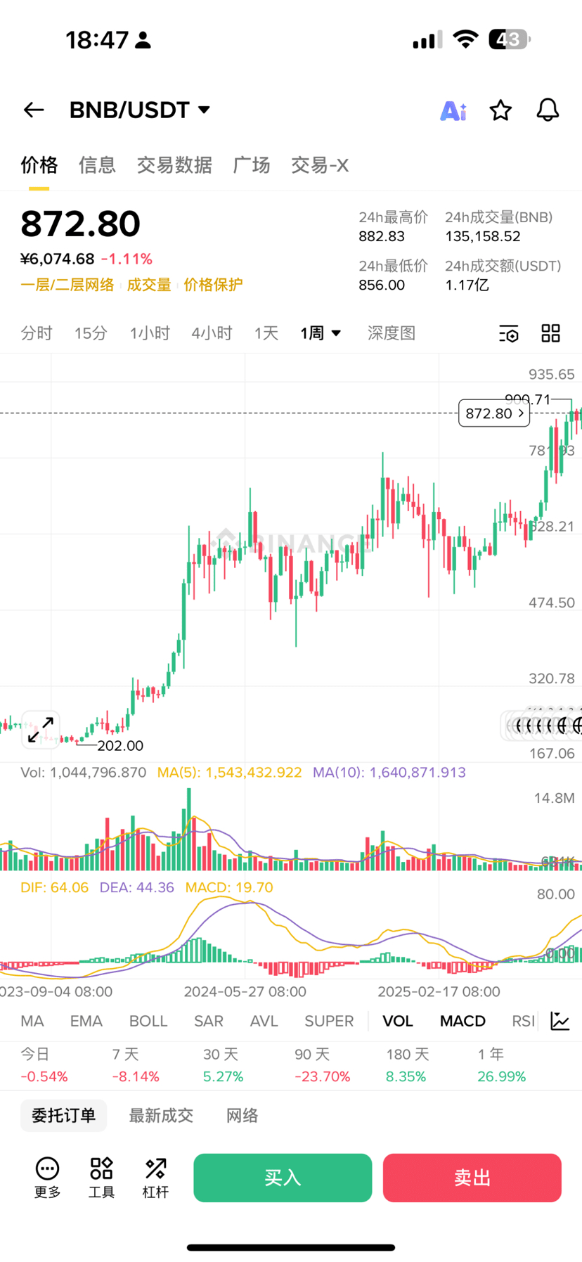Essendo un pesce testardo, mi piace BNB. Sono affezionato a BNB, forse ognuno ha le proprie preferenze. BNB è il token principale di Binance, e se credi nello sviluppo e nel grande potenziale di BNB, è un buon investimento. Dal punto di vista del mercato spot, BNB potrebbe superare i 2000 dollari. Attualmente BNB vale più di 800 dollari, con investimenti frazionati di 700 e 600 dollari. Quando BNB arriverà a 2000 dollari, quale sarà il tuo rendimento? L'oro attualmente vale 5000 dollari. Se dovesse arrivare a 10000 dollari, quanto tempo ci vorrà? Quale pensi arriverà prima a raddoppiare? A dire il vero, nel cuore del pesce testardo, BNB ha maggiori possibilità di raddoppiare. Che tu investa in oro o BNB, questi anni non ti hanno deluso. Se investi in BNB verso la metà del 2023, già è passato da circa 200 a circa 1400, quasi sette volte.