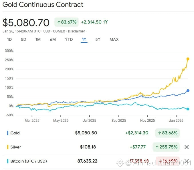Gold reached a record over $5,000 amid trade tensions while Bitcoin fell to $86,000, marking a sharp divergence as the precious metal surged 17% in January