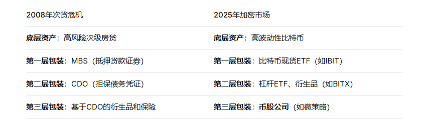 現如今比特币被ETF、杠杆ETF、币股公司、衍生品层层嵌套,一旦价格跌破能引发ETF持有者恐慌的关键点,可能触发一系列链式反应。