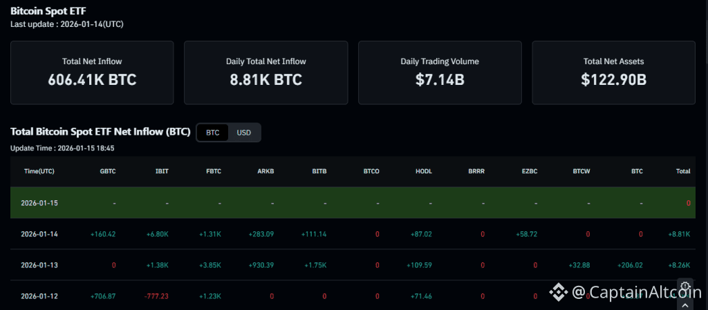 On-chain data provider SoSoValue reported a record capital influx into the Bitcoin spot ETF on January 14. Notably, this investment basket recorded $843.6 million in liquidity inflows on that day, its highest daily inflow since October 7, 2025.