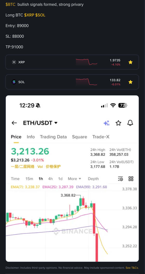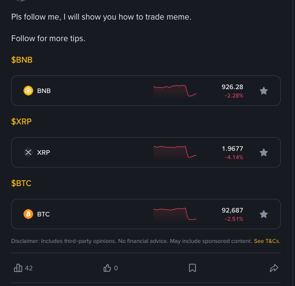 トークンタグ(例:$BTC )はラベルよりも多い!これは、あなたのコンテンツに関心を持つ人々にリーチするための秘密です。「書いて稼ぐ」手数料は、ユーザーがあなたの投稿に記載されたトークンタグまたはチャートをクリックした後に適格な取引を行った時にのみ、あなたのウォレットに入ります。無思考でタグ付けしてもクリックを得ることはできません。