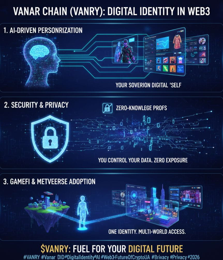 Привіт, крипто-спільнота! Січень 2026 року приносить нові виклики та можливості. Поки інші проекти все ще зосереджені на масштабуванні транзакцій Vanar Chain ($VANRY) вже дивиться в майбутнє — в еру децентралізованої цифрової ідентичності (DID) та її синергії з AI.