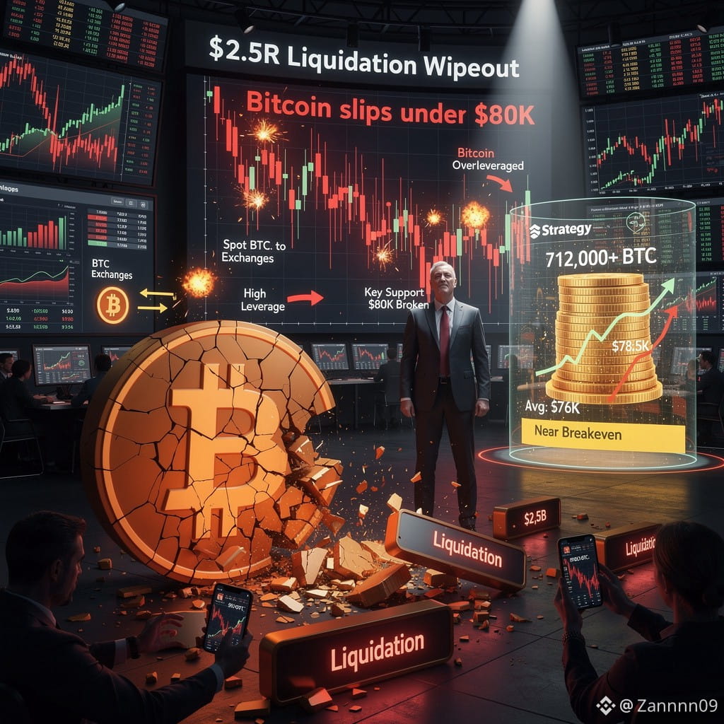 Bitcoin slipping below $80K didn’t just sting traders — it triggered a massive liquidation cascade.