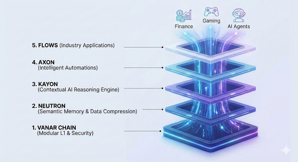 The highest ranked one is the high-performance Vanar Chain at the base. However it is really the layers above that do the magic. The semantic memory of the network is called Neutron which reduces large volumes of raw data to a machine comprehensible form. This data is then interpreted by the reasoning engine, called Kayon, to give contextual information. This implies that a dApp on Vanar may not simply perform a transaction, but it may know the reasons as to why this transaction is being conducted. Lastly, this intelligence is converted into automated actions and real-life uses in the finance, gaming, and more by using Axon and Flows.