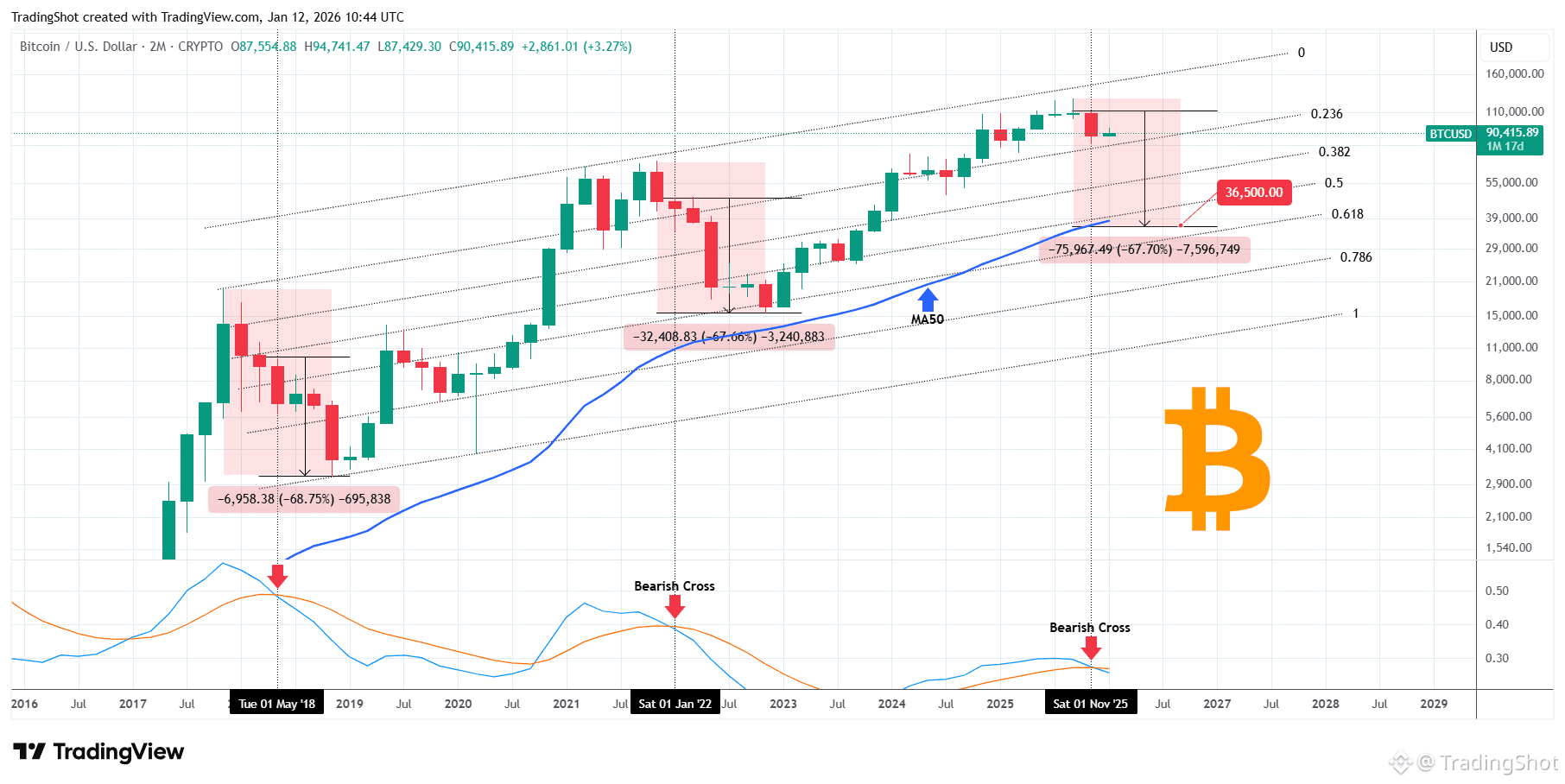 Bitcoin (BTCUSD) has closed the last 2M candle on a MACD Bearish Cross. Every time this has happened historically (2 times), Bitcoin has dropped by -67.66% and -68.75% from he top of that candle.